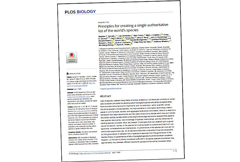 The Catalogue of Life is contributing actively to the new IUBS Working Group on the Governance of Taxonomic Lists